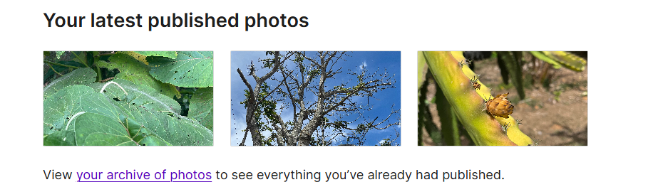 Luego de realizar mi primera carga exitosa aun en revisión, continuo la contribución seleccionando y subiendo mas fotos de la naturaleza para llegar al objetivo de mínimo 30 imágenes para la comunidad.