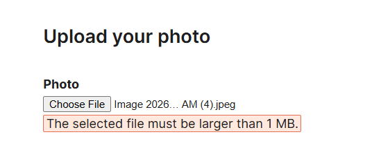 subir el archivo y verificar que cumpla con el tamaño minino.
