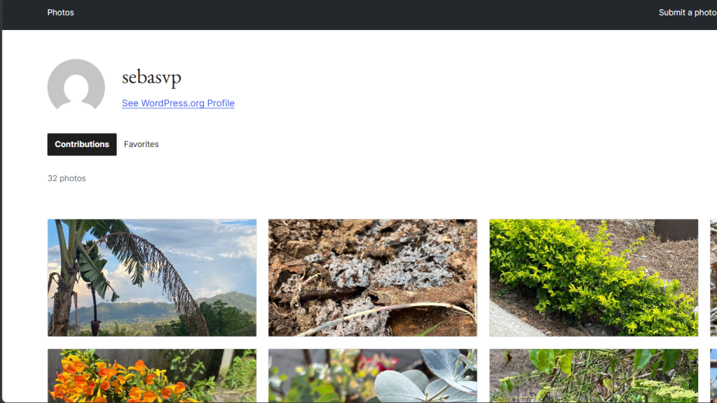 El enlace a mi directorio de fotos donde se podrán ver las 30 fotografías, este es: https://wordpress.org/photos/author/sebasvp/